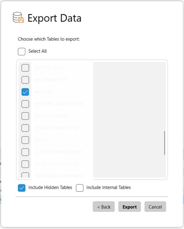 Nice things is that in this step you can even select tables which are hidden from reporting.