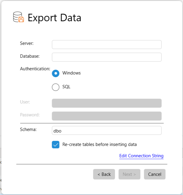 For comparison reason, here are export options for export to SQL table and for export to CSV file.