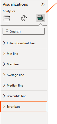 When you select the visual, do not select Formatting pane, but Analytical pane and then go to “Errors bar” option: